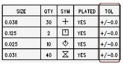 如果您的孔公差為零(請(qǐng)參見(jiàn)下文),那么Advanced Circuits將假定您沒(méi)有使用我們的默認(rèn)孔公差。 上面列出了我們的默認(rèn)孔公差。